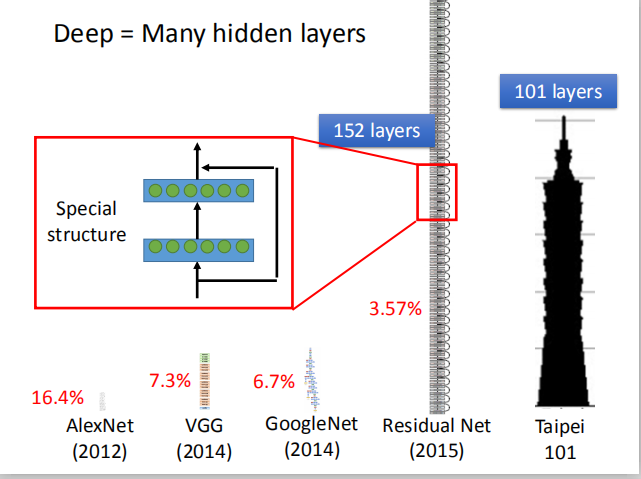 • 但是一个不好的网络结构可能不包含一个表现好的函数,所以我们需要设计网络结构以保证表现最好的那个函数在我们的函数集里。