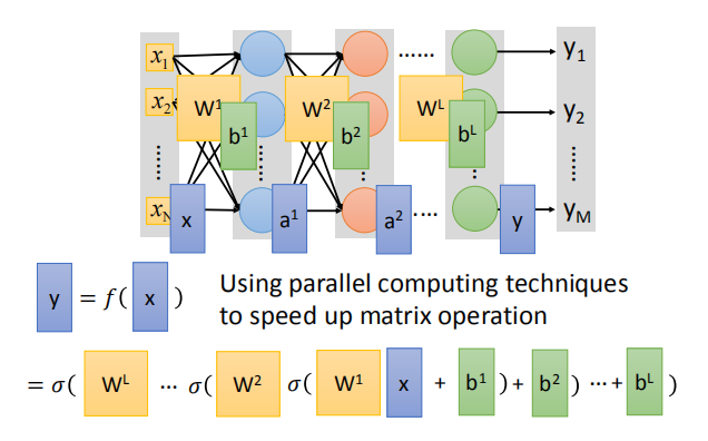 • 假设我们确定用全连接前馈网络,也就是确定了一个函数集,接下来还需要用梯度下降算法找到表现最好的那个函数。