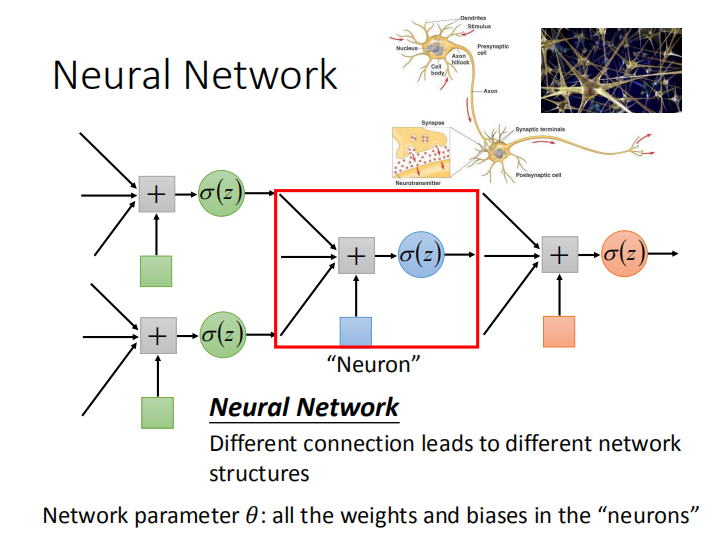 • 将神经元以全连接的方式连接起来,不确定网络参数(Network parameter),相当于确定了一个函数集 - 神经网络。
