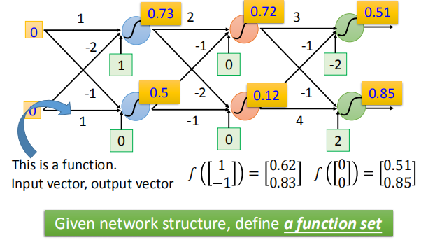 • 确定网络参数相当于从函数集中确定了一个函数,每输入一个向量都会有一个输出的向量与之对应。