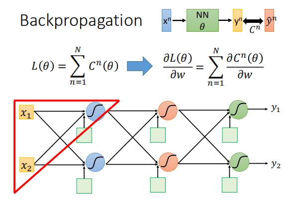 • 我们要最小化的损失函数 L(θ) 是每一组数据的损失 C(θ) 之和。(注:这里的 C(θ) 对应视频中的 l(θ))