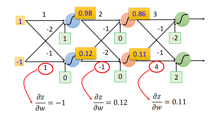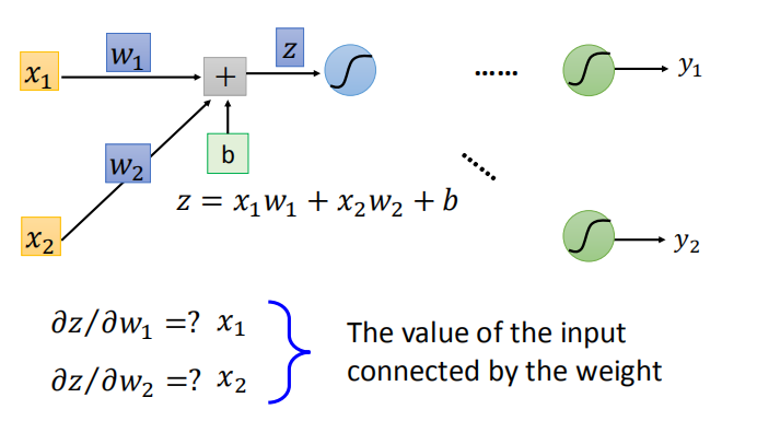 • 为所有的参数计算 $\frac{\partial z}{\partial w}$
