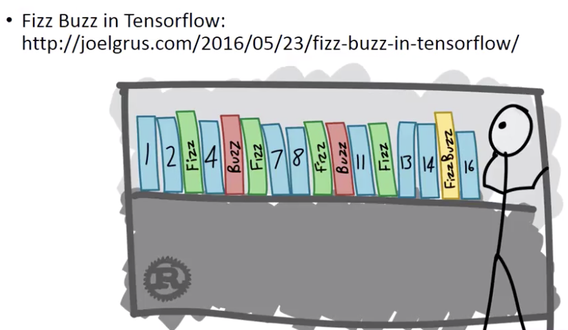 - Fizz Buzz in Tensorflow:http://joelgrus.com/2016/05/23/fizz-buzz-in-tensorflow/ 这是个有趣的故事。