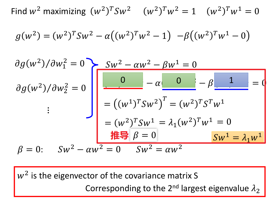 $w^2$ 是协方差矩阵 S 的特征向量;并与其第二大特征值 $\lambda_2$ 相对应
