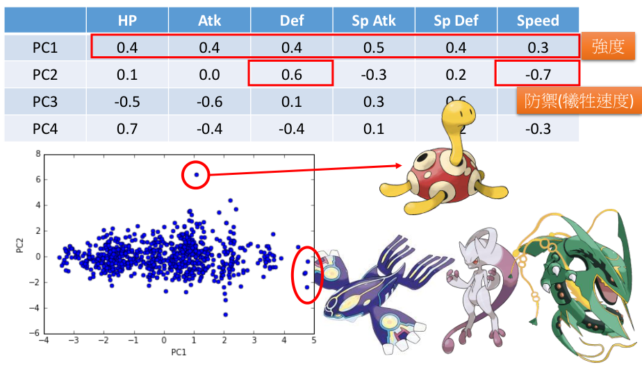 每个宝可梦是六维向量,计算出6个特征值,计算6个特征值的 ratio ,