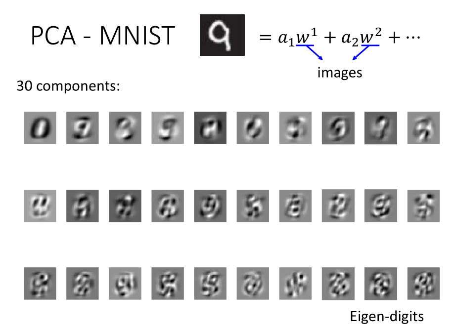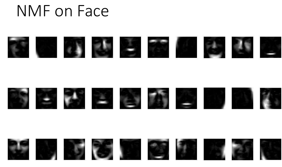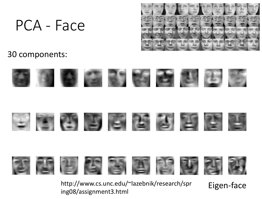 对人脸,取前30个 PC ,每个 PC 拼成图片,发现都是脸,而不是脸的一部分。
