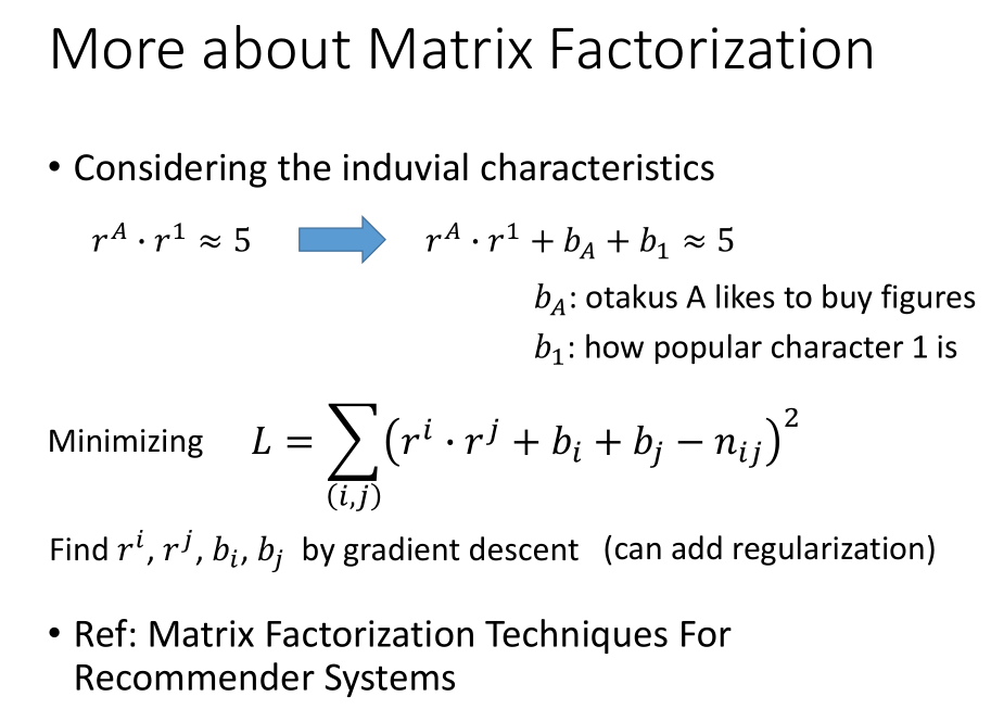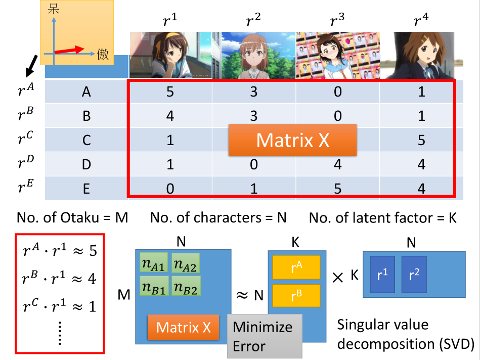 我们要从购买记录(矩阵)中推断出 latent factor ,latent factor 的数目需要事先定好。