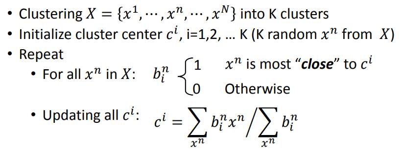 • 利用分好的 K 个类中的样本重新算出每一个类的 ci