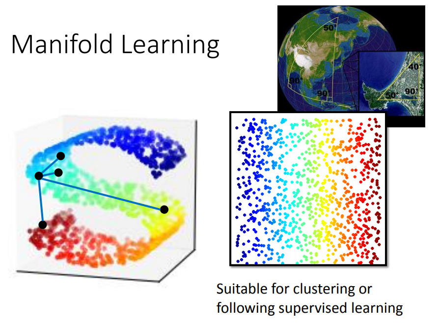 流行学习就是把 S 型摊平,将高维空间内的低维数据展开,这样才能计算点对点的距离。