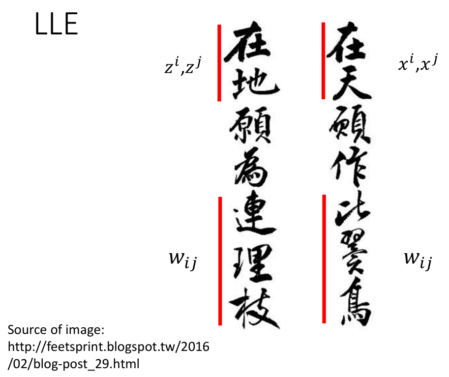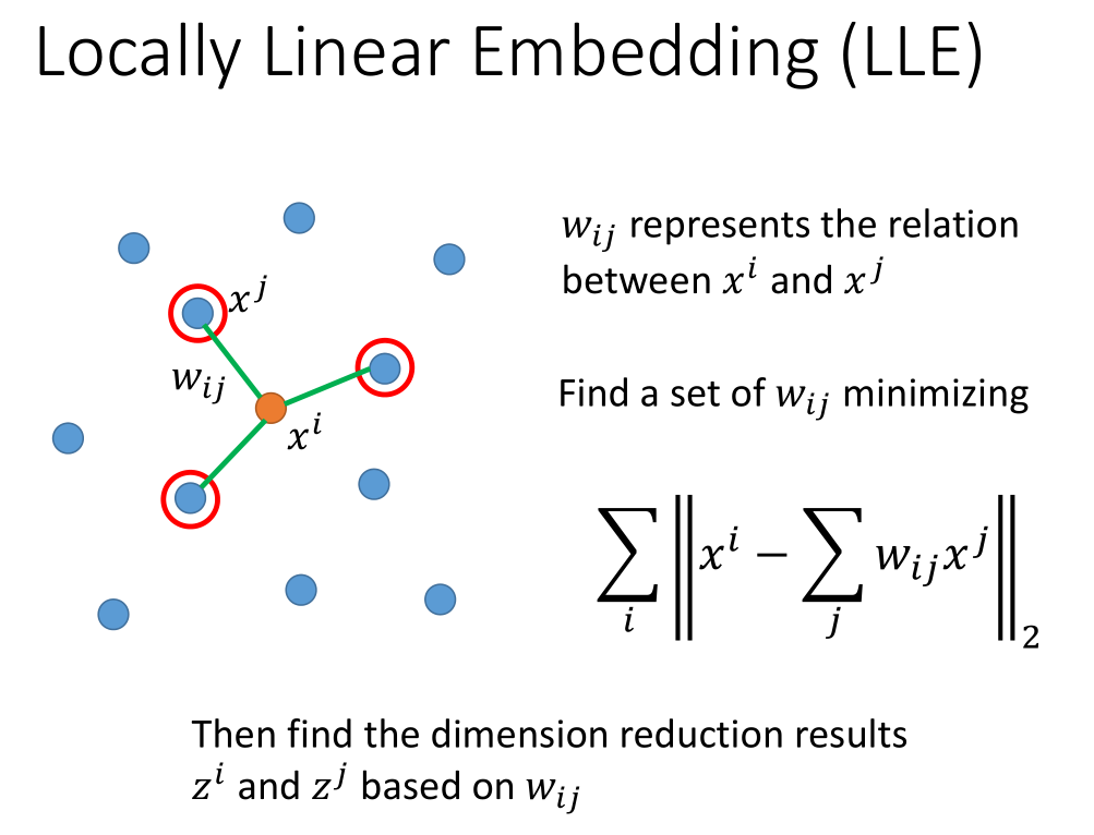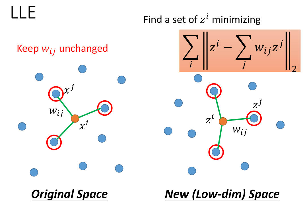 把$x^i$,$x^j$ 降维成$z^i$,$z^j$ 之后要保证它们之间的$w_{ij}$ 不变。