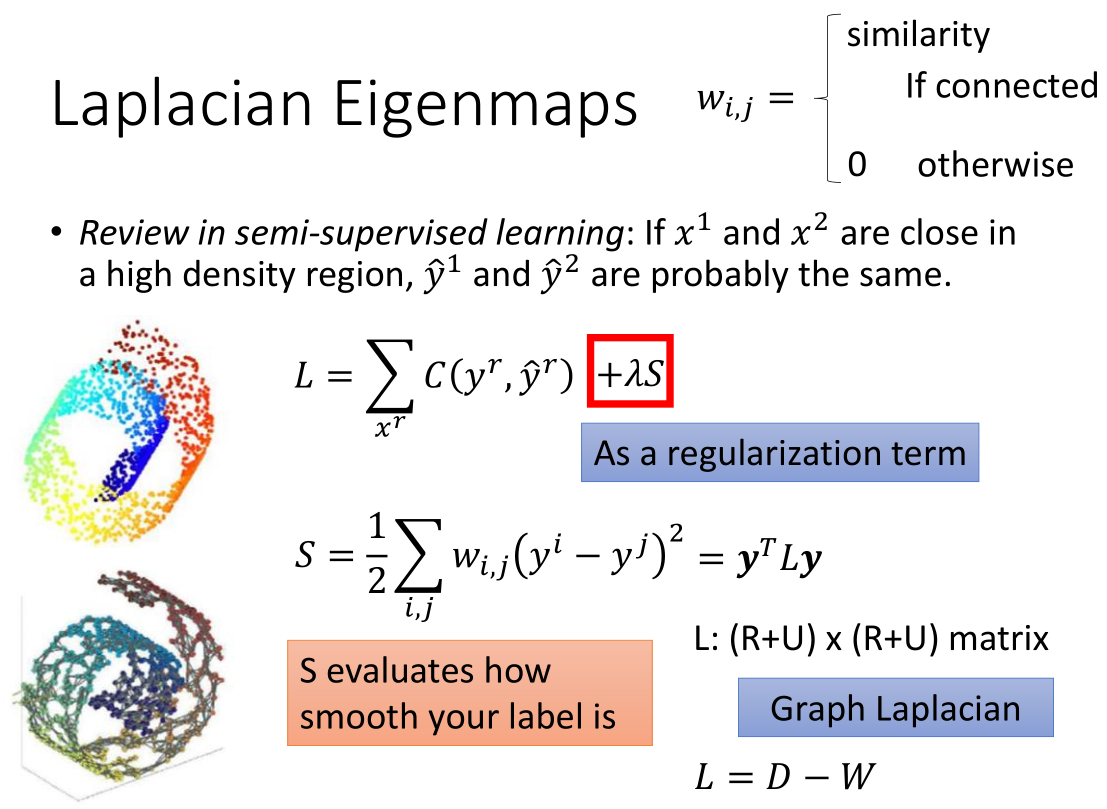 它利用 unlabelled data 考虑得到的 label 是否 smooth,作用类似于正则项。