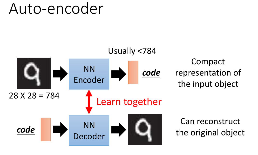 但做的是无监督学习,可以找到很多 input image ,但是不知道 code 最终结果无法计算误差,所以没法学习更新编码器(NN Encoder)。