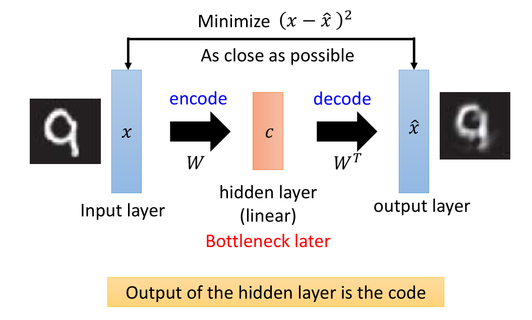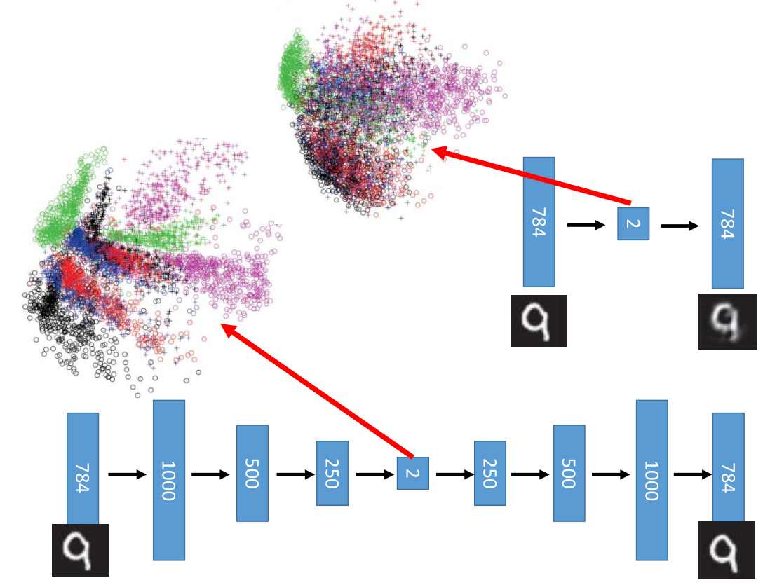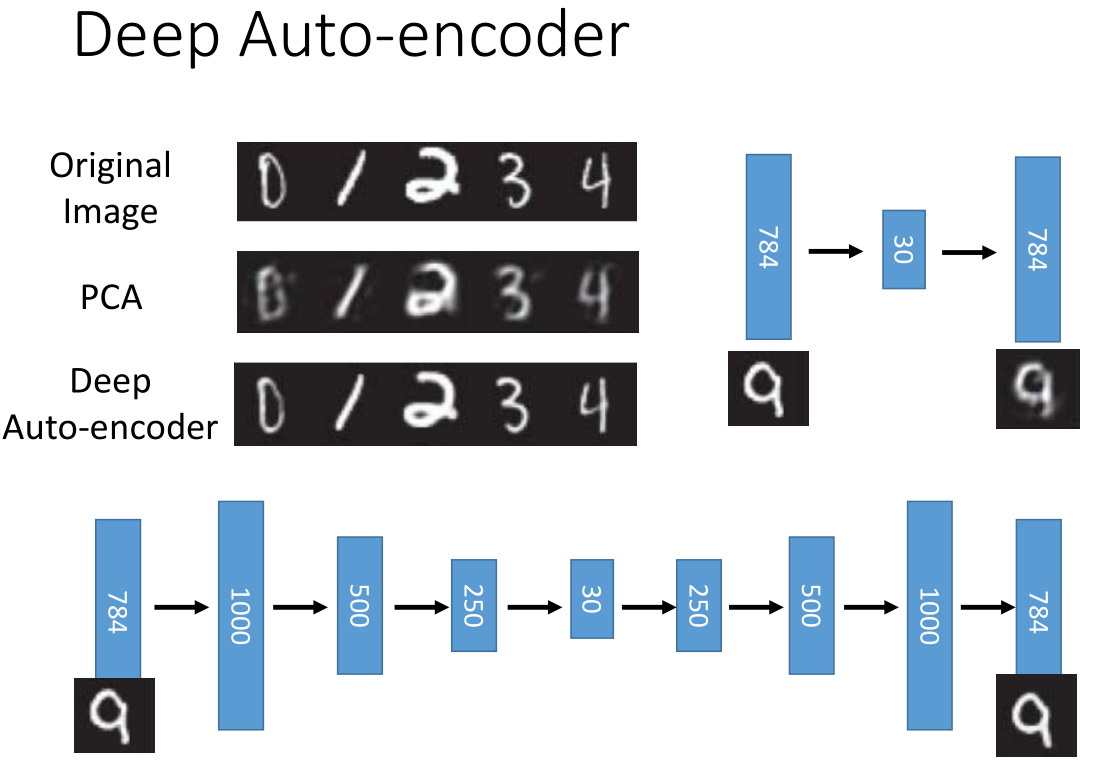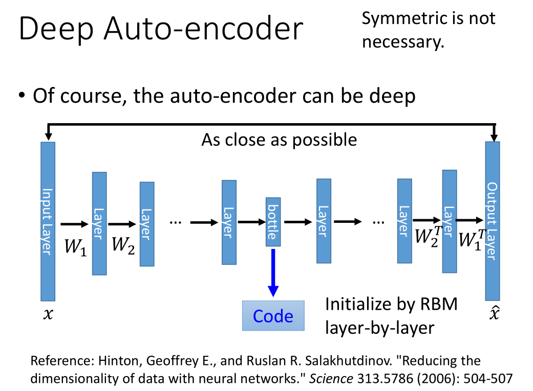 当这个结构变得很深,就变成了deep auto-encoder,encoder 和 decoder 的系数不一定是对称的。