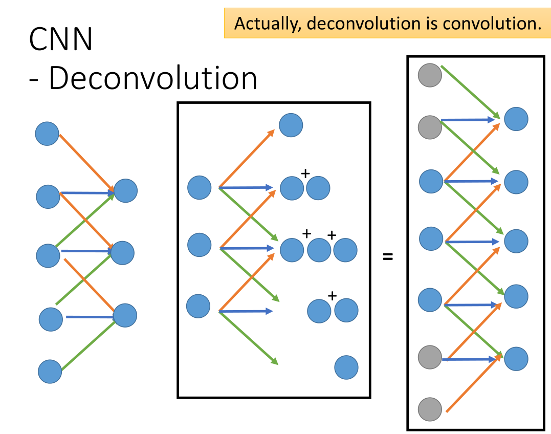 中间从三维扩展成五维的过程相当于右边通过CNN将七维降成5维(灰色的输入代表0)。