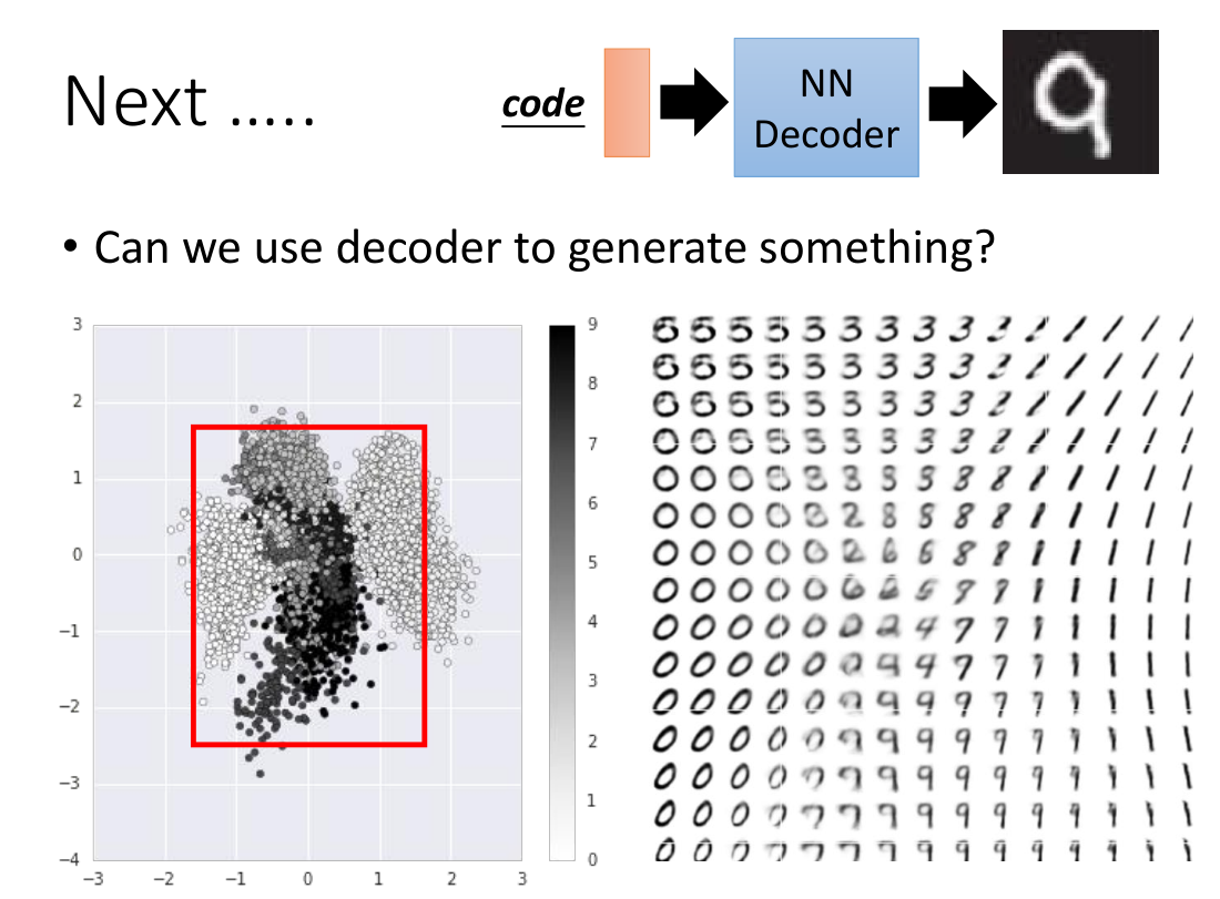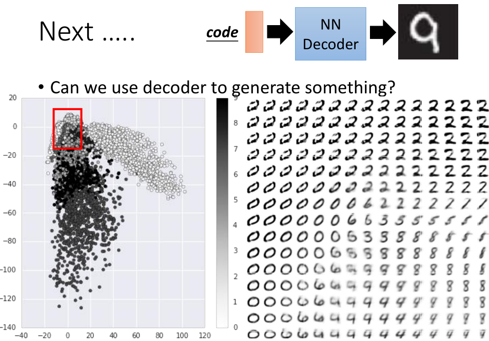 784维降到2维,根据向量的分布选择红框,在红框中等间隔采样,