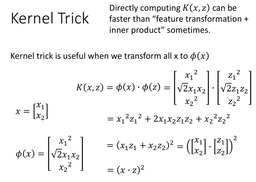 将损失函数可以改写为上图中的样子,我们不需要知道 $x$,只需要知道核函数 $K(x,z)$ 的值即可,这种方法就叫做核技巧。